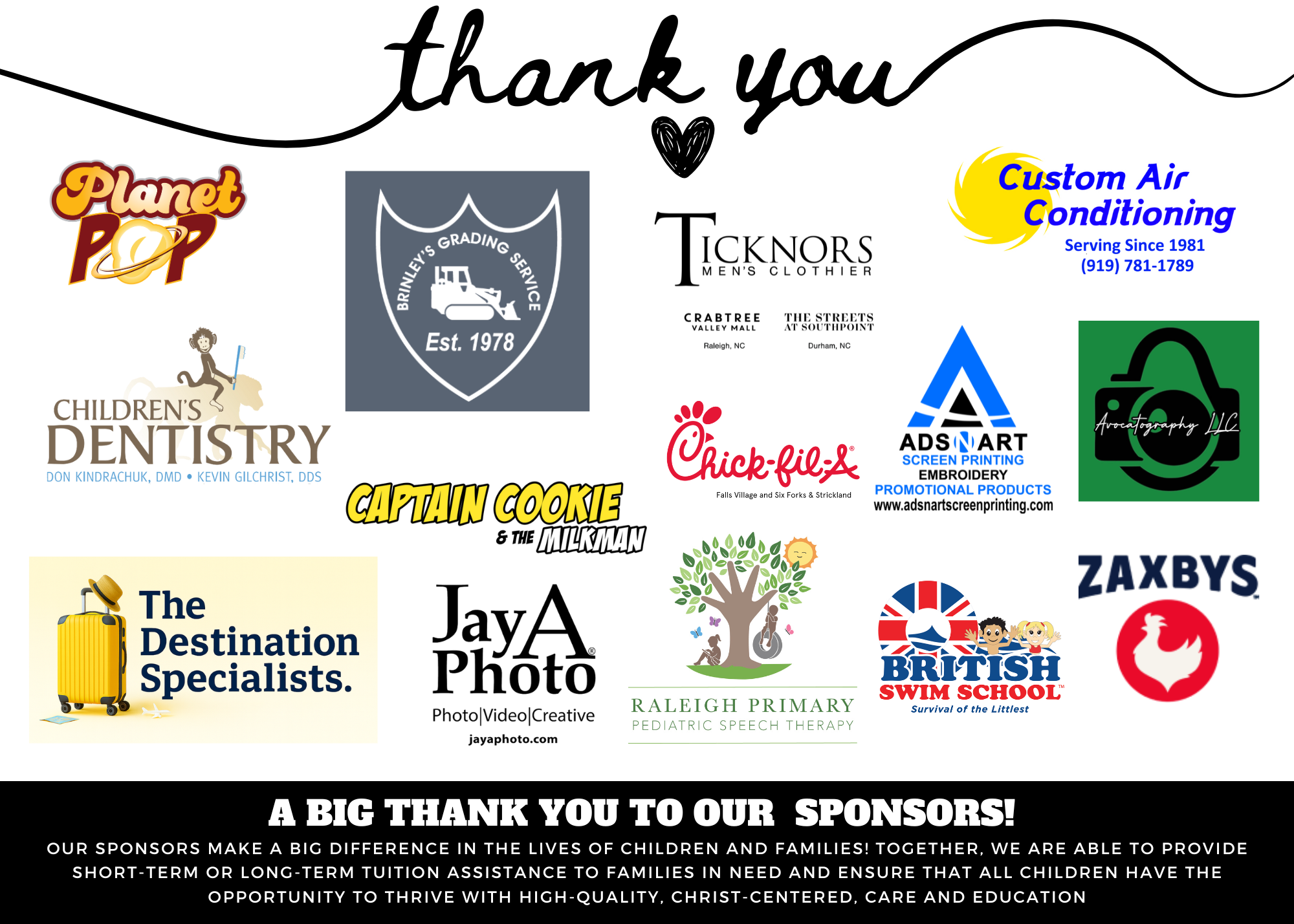 Help make a lifelong difference for young children in our community! With your help, we will be able to help many children and families in need receive Tuition Assistance for high quality, loving, Christian care and education.